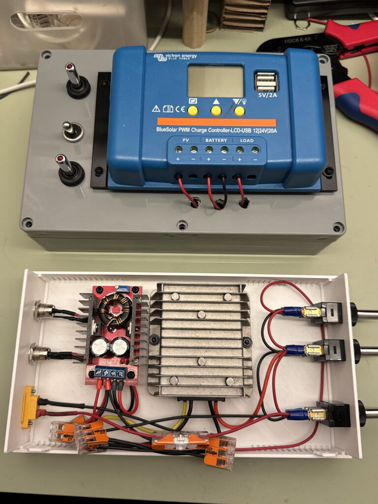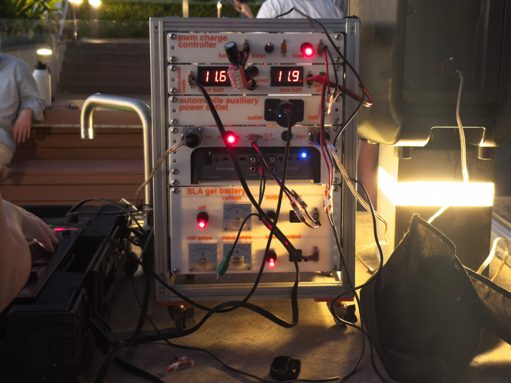 Why lead acid batteries? Because they won’t explode / catch on fire like LiPo’s if roughly handled or under challenging heat and moisture conditions, and are cheaper than LiFePO4 batteries. Weight isn’t really a constraint for this project. Perhaps I should try a LiFePO4 battery and MPPT charger one day. Adding a 12v fridge would be fun!